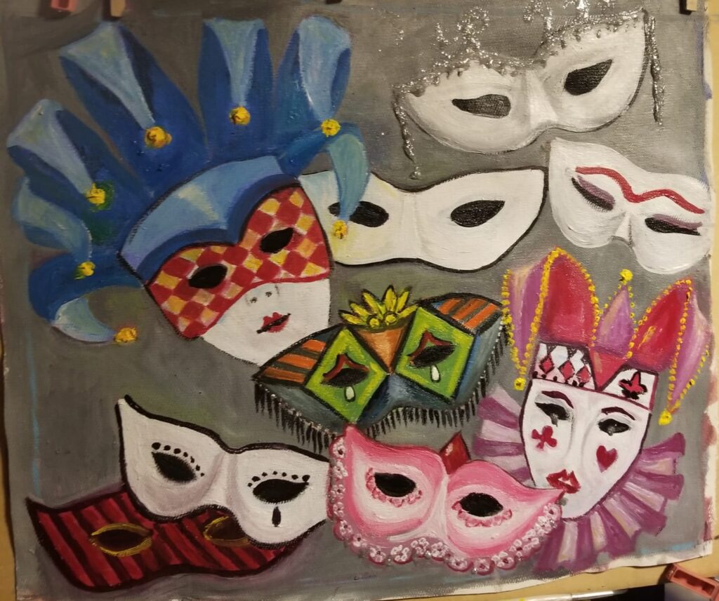 Este espectacular lienzo nos conmueve por cómo nos muestra los diferentes momentos que atraviesan nuestra vida. Nosotros somos mucho mas que uno, en cada una de las alternativas que se nos presentan debemos elegir al máscara que más podrá ayudarnos. A veces lo logramos. Otras no.
