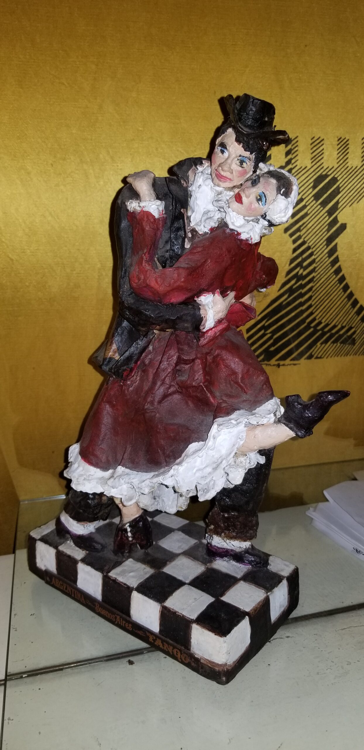 Una pieza fundamental de Amarilis Arts. Los amantes están fundidos en una danza con un movimiento reflejado de tal manera que la estatua parece moverse.